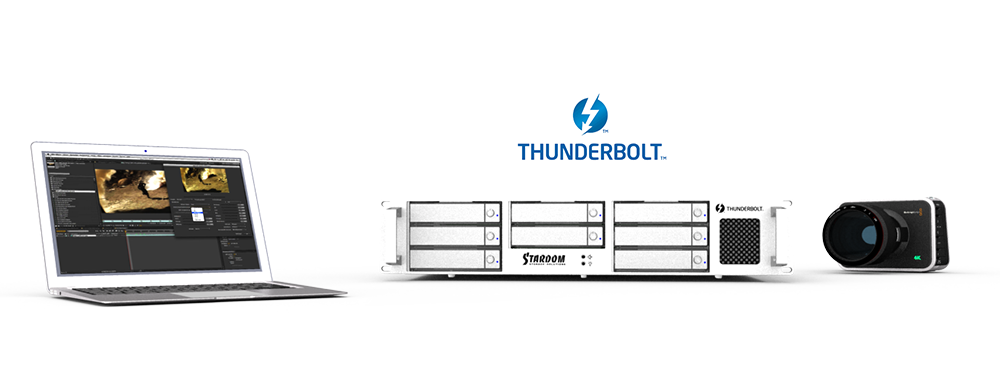 DR8-TB2 supports Thunderbolt 2.0 (TB2) interface for an extreme high data transfer speed.  And both of the two TB2 ports are equipped with up to 20Gb/s data transfer rate which is 4 times faster than USB3.0 ,2 times faster than USB3.1 and even 3+ times than SATA III interface.  You could definitely use it to play your 4K high-resolution films with no any lagging hassle.  Thunderbolt 2.0 interface not only brings you this high data transfer rate advantage, it also let you chain maximum up to 6 products (or other compatible storage products).