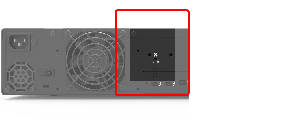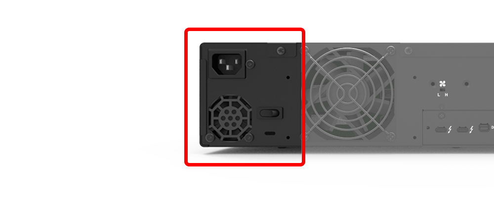 DR8-TB3 is also designed with the MCU feature which monitors and helps improving its in-chassis system temperature. While the system temperature rises up to 50 degree-C (118 degree-F), MCU will bump up the 8 cm fans with full speed; and once system temperature goes down to 45 degree-C (109 degree-F), you could manually adjust fan switch on the rear, MCU would reduce the fan speed down to a half speed for a better green user environment from a less fan noise and lower power consumption.