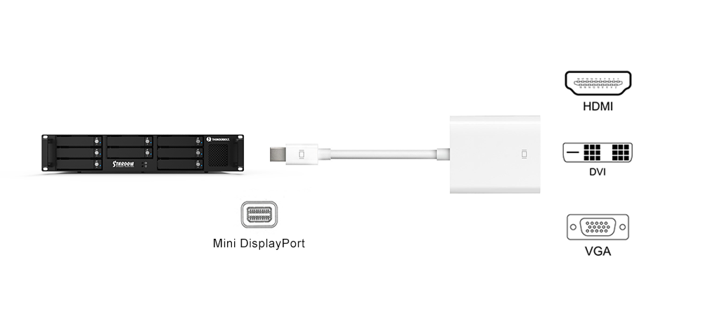 All our Thunderbolt 3 products also support a Mini DisplayPort which gives you a very easy way to connect to your display device. This Mini DisplayPort is fully complaint to all the existing DVI, HDMI, and VGA display devices thru an adapter.