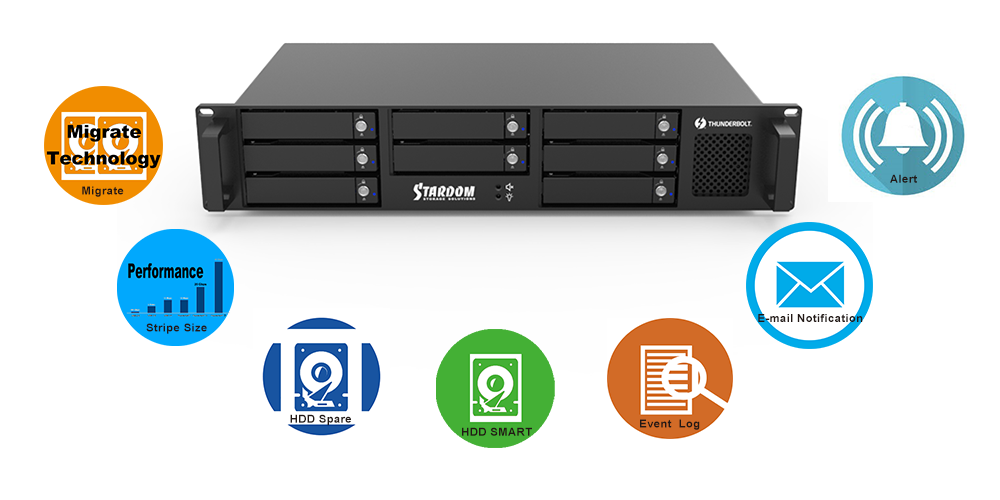 DR8-TB3 use Marvell software, to adjust the hard drive and DR8-TB3 transfer data via the "stripe size" function, so that DR8-TB3 based on your use "stripe size" to achieve the most stable and fastest performance.