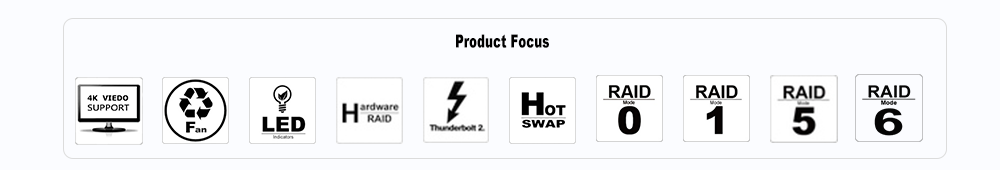 | Package Accessories | * SR8-TB2 x 1 ( with removable drive tray enclosed x 8 ) * Thunderbolt Cable x1 * Power Cord x1 * Accessory Kit * Quick Installation Guide x1 |