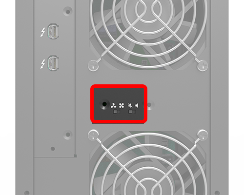 SR8-TB2 is also designed with the MCU feature which monitors and helps improving its in-chassis system temperature. While the system temperature rises up to 50 degree-C (118 degree-F), MCU will bump up the 8 cm fans with full speed; and once system temperature goes down to 45 degree-C (109 degree-F), you could manually adjust fan switch on the rear, MCU would reduce the fan speed down to a half speed for a better green user environment from a less fan noise and lower power consumption.