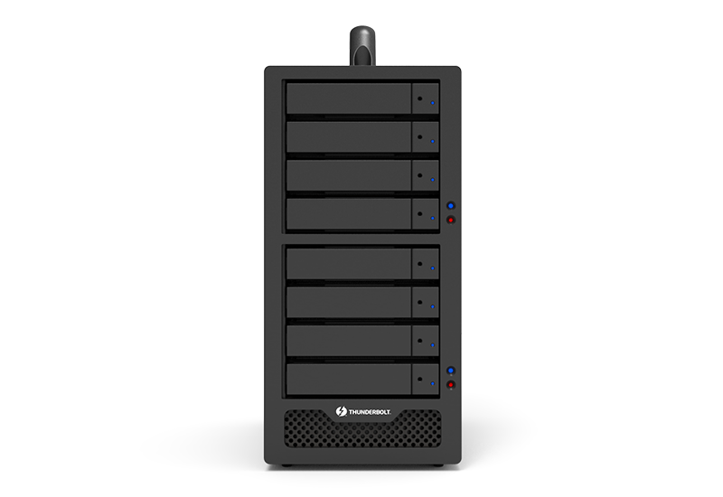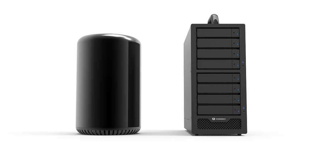 Your Mac Pro Cylinder could connect to one SR8-TB2 and chain to at most 6 more SR8-TB2 products for a huge memory storage capacity thru its high performance Thunderbolt 2 interface. You could definitely enjoy its huge memory capacity together with the RAID 5 or even RAID 6 setting for an excellent data protection.