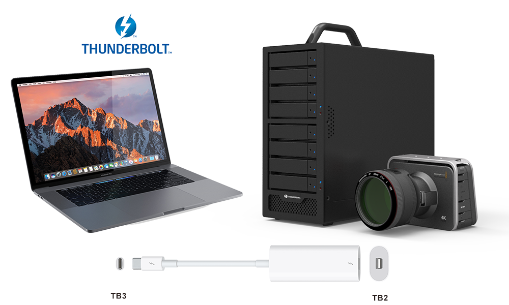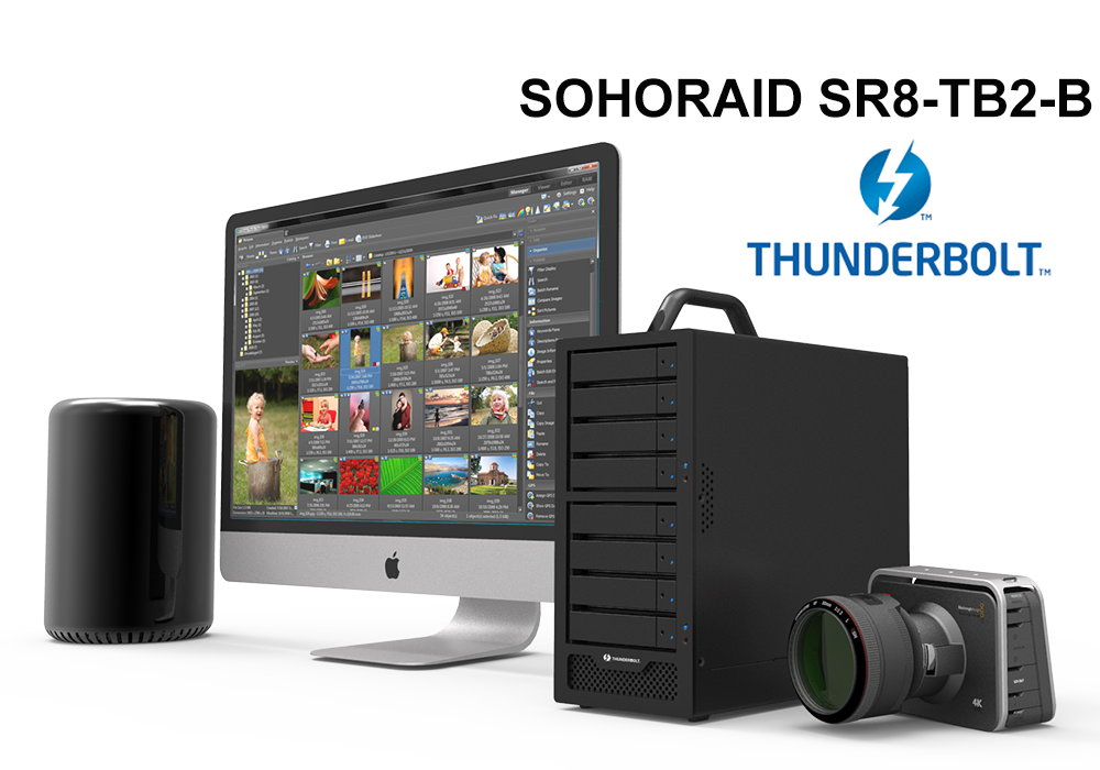Since SR8-TB2 provides two Thunderbolt 2 ports, just use your MacBook Pro via TB2 to TB3 adapter, you could set up your own full function photo studio right away. You could then save tons of RAW images. And of course, you could edit and process the images quickly once you set up your SR8-TB2 with RAID 0 feature.