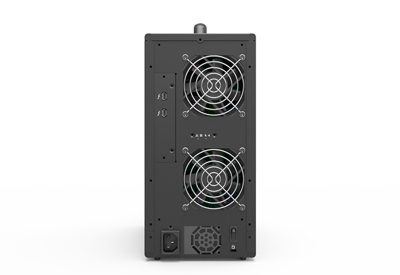 SR8-TB2 supports Thunderbolt 2.0 (TB2) interface for an extreme high data transfer speed. And both of the two TB2 ports are equipped with a up to 20Gb/s data transfer rate which is 4 times faster than USB3.0 and even 3+ times than SATA III interface. You could definitely use it to play your 4K high-resolution films with no any lagging hassle. TB2 interface not only brings you this high data transfer rate advantage, it also let you chain maximum up to 6 products (or other compatible storage products).