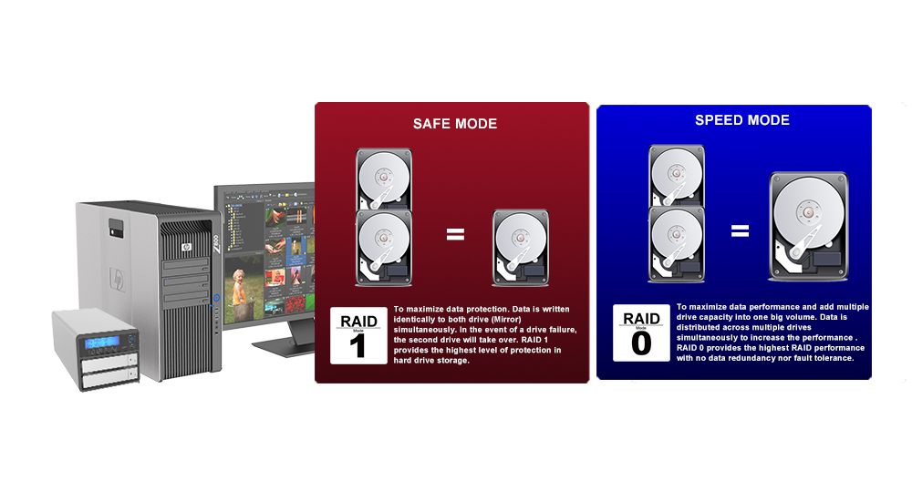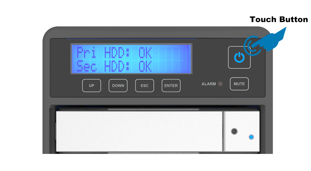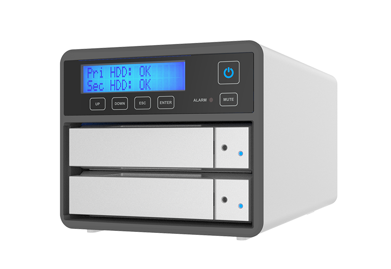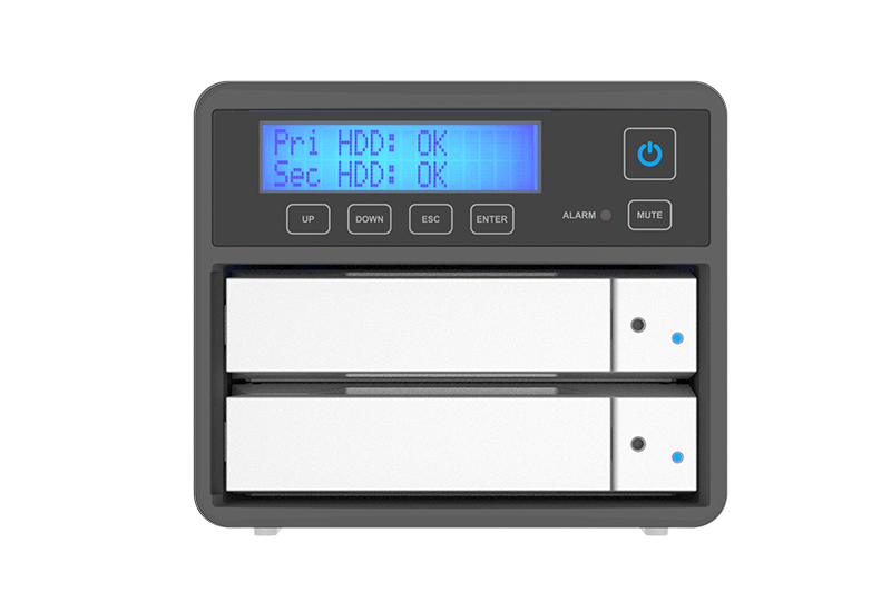4. An LCD display providing immediate updates on RAID mode status and drive conditions.
