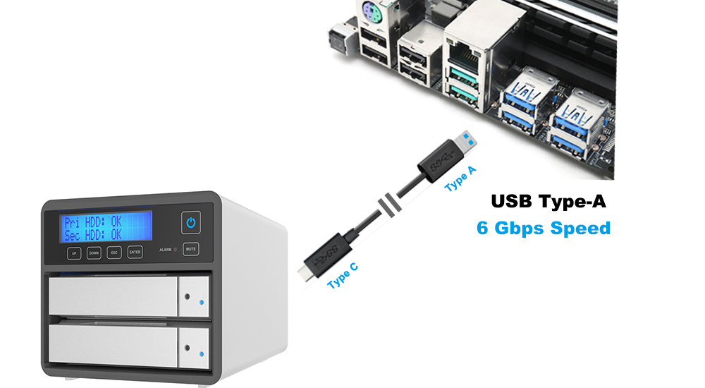 2 x 2.5"/3.5" SATA III ( 6.0 Gbits) HDD/SSD |