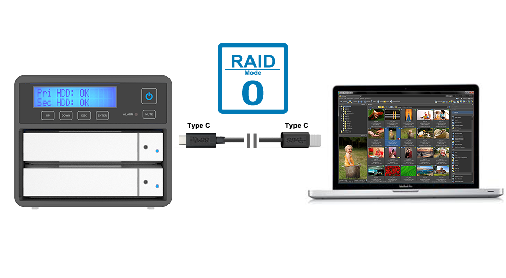 The SR2-B31 offers full-fledged support for SATA 6G drives. With a user-friendly touch button, it allows you to easily switch between RAID 0 and RAID 1 configurations, simplifying storage management and ensuring efficient use of your drives.