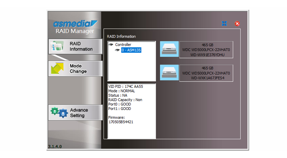 Offers RAID 1, RAID 0, JBOD, and SPAN(BIG) modes