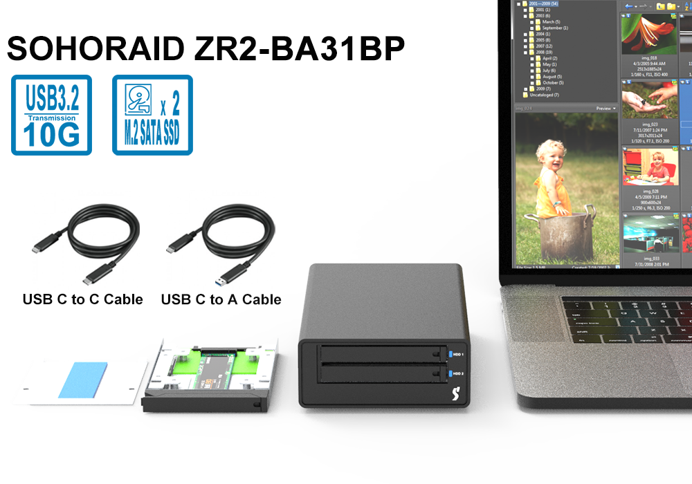 | Package Accessories | * ZR2-B31BP x 1 (with removable 2 x M.2 SATA Converter) * USB 3.2 Gen 2 (Type-C to Type-C) Cable x 1 * USB 3.2 Gen 2 (Type-C to Type-A) Cable x 1 * Accessory kit * Quick Installation Guide |