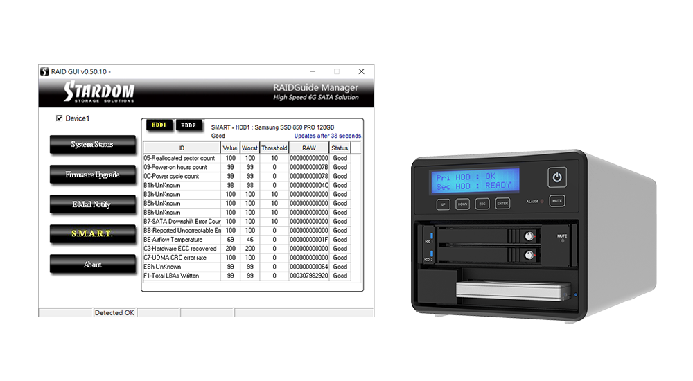 SR3MS-B31A, in addition to the back light screen that can display the module status, for Windows users, a software RAIDGuide Manager monitoring program is also provided. It allows users to understand the RAID module and hard disk status more directly through the monitoring program. Even better, after setting the monitoring program, it will take the initiative to send letters to users when the hard disk fails. This instant notification allows users to be aware of the situation as soon as possible to remedy the situation faster.