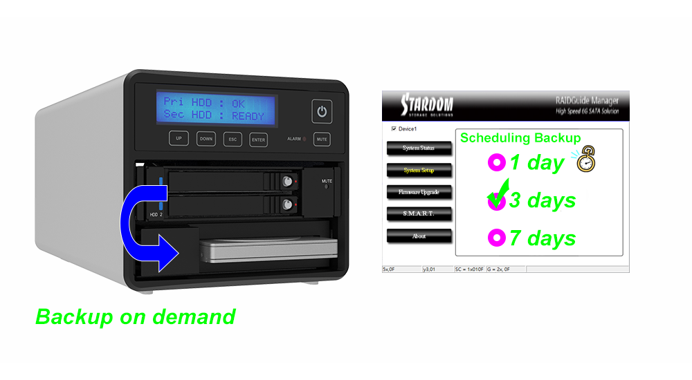●Backup On Demand for RAID 1/0 data on the move.
