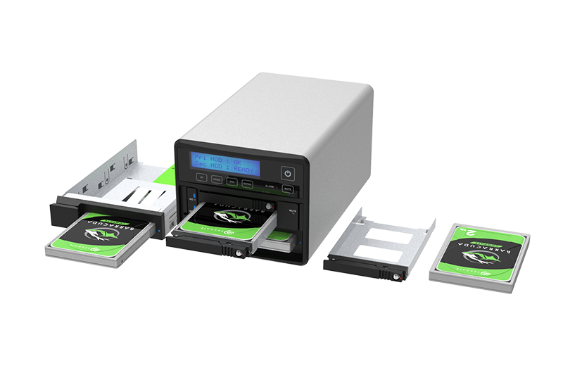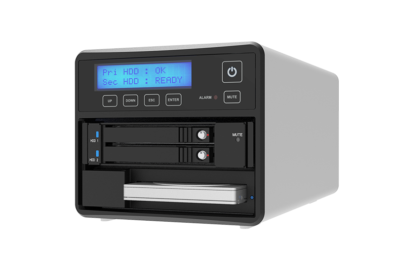 Both Data Safety and Data On The Move + Backup On Demand function, Provide USB 3.2 Gen 2 Type-C to A cable, drive hot swappable, LCM display and touch button