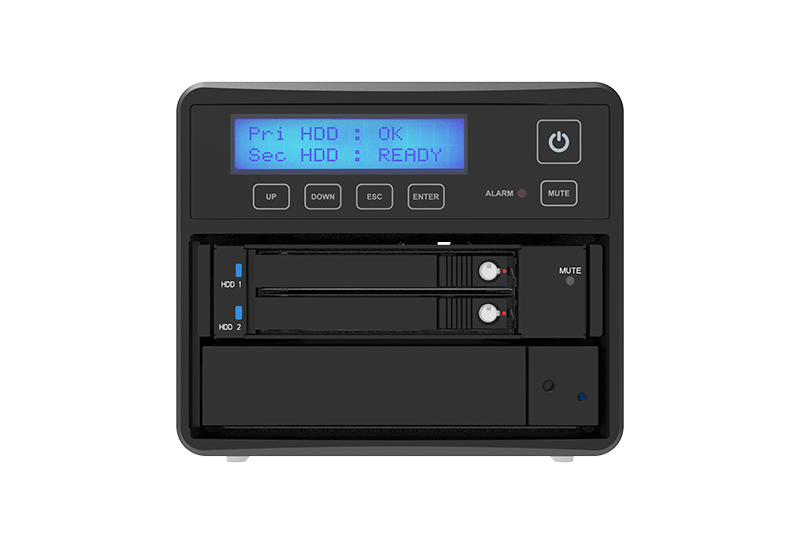 Both Data Safety and Data On The Move + Backup On Demand function, Provide USB 3.2 Gen 2 Type-C to C/A cable, drive hot swappable, LCM display and touch button