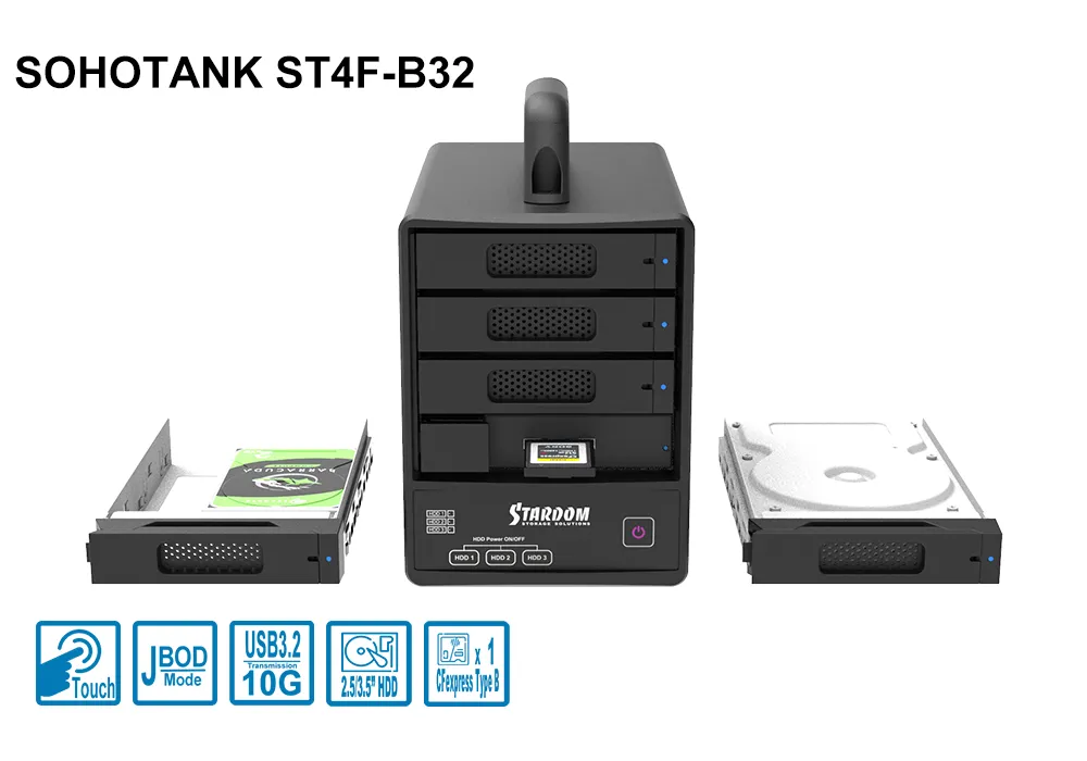ST4F-B32: High-Speed, High-Capacity JBOD External Box with USB 3.2 Type-C, Thunderbolt™ 3/4 Interface & CFexpress Type B Support
