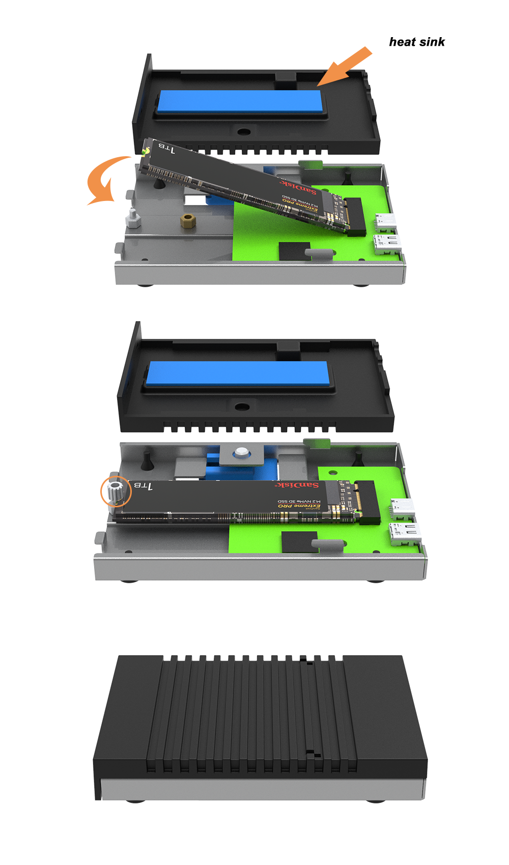 5. Optimal Performance: The cooling fin heat sink ensures the device operates at optimal temperatures, prolonging the life of the SSD and maintaining consistent performance.
