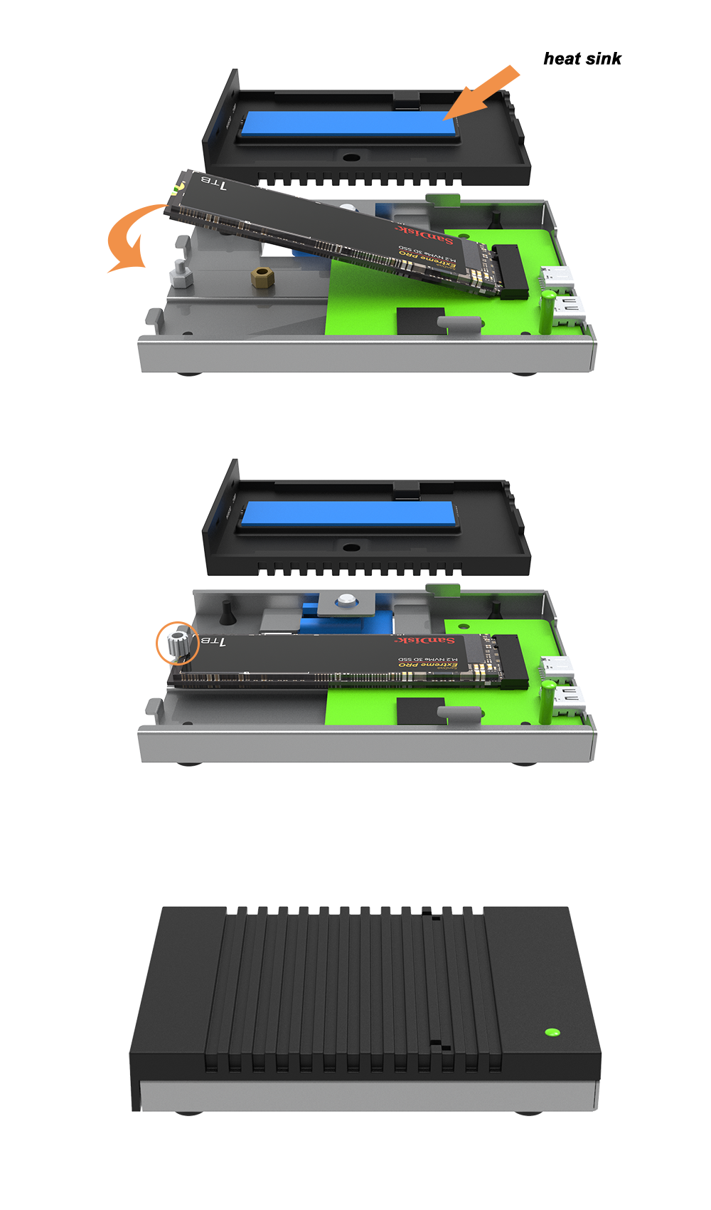3. Versatile Compatibility: The device's support for various M.2 NVMe SSD sizes and its Type-C interface with Thunderbolt 3/4 compatibility ensures it works seamlessly with a broad range of SSDs and devices.