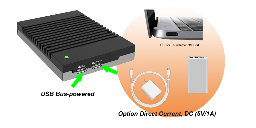 The design of UBOX-B4BP+ allows it to be powered either through a USB bus or an optional 5V DC input. This ensures that users can access their data even in scenarios where a dedicated power source might not be available.