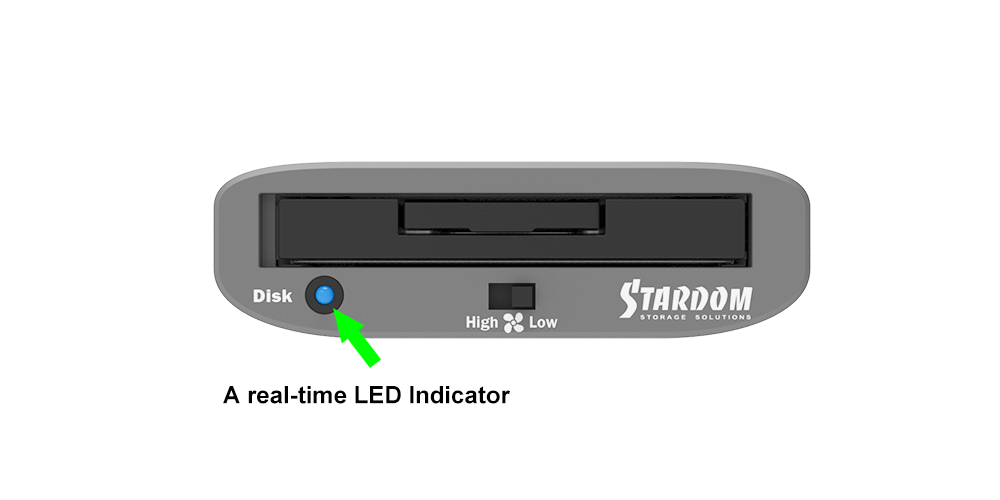A real-time LED Indicator provides immediate visual feedback on drive activity and connection status.