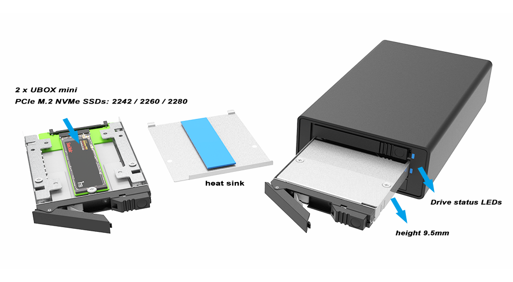 ● Supports PCIe M.2 NVMe SSDs: 2242 / 2260 / 2280