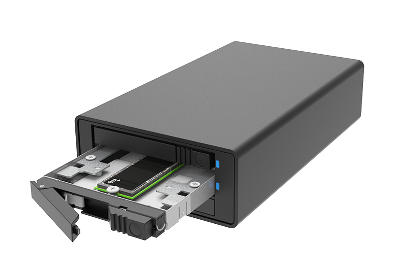 Dual NVMe enclosure with USB 3.2 Gen 2x2 + RAID |