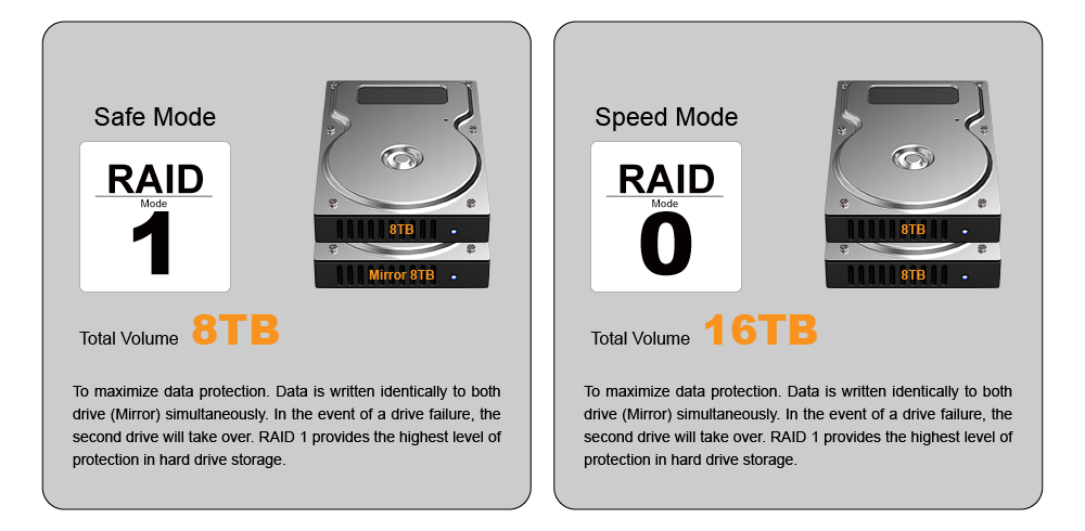 RAID 0 mode is appealing for its transmission speeds. It can accelerate the access speed of data, but it is not secure.