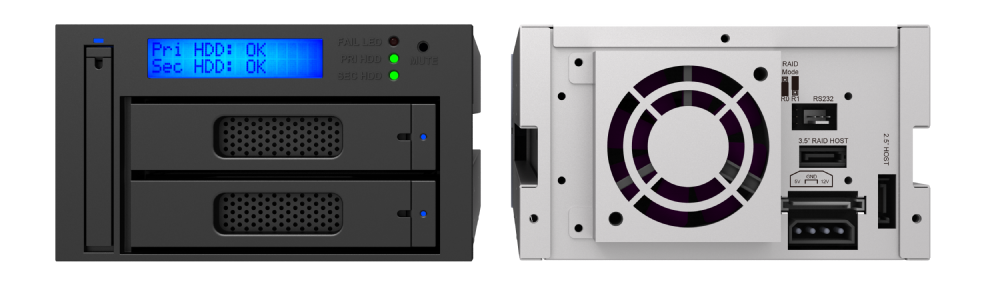 3.Hot extract one of the 3.5” hard disks periodically and bring it back to the data center for data storage or archive. And place new hard disk to maintain the RAID 1