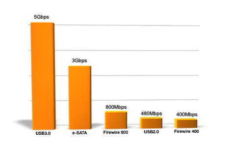 | Interfaces | Two Firewire 800 Ports One Firewire 400 Ports USB 3.0 Port ( up to 5 Gbps ) e-SATA Port ( up to 3 Gbps ) |