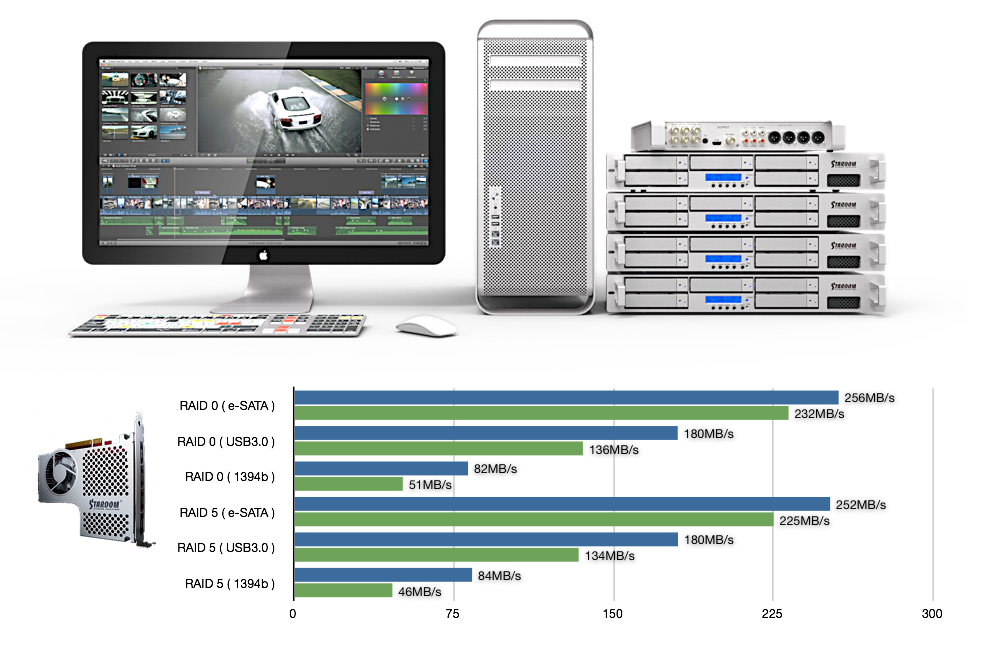 Quadruple connections including e-SATA, FireWire 400 / 800, and USB 2.0 / 3.0 offer creative employees more flexibility across different platforms and deliver superior professional performance and convenience.